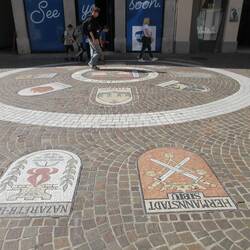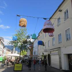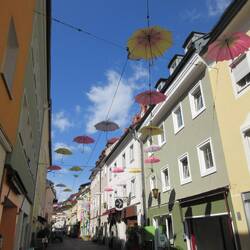 Der Pranger, die Dreifaltigkeitssäule, die Kirche mit dem Turm und Balloons, die Lederergasse mit den Schirmen, der Hauptplatz mit den komischen Glocken (?), der Paracelsus Hof, derRead more