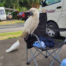 Come al solito mi sveglio prima io di Nico e stamattina vicino al nostro van c'è un gruppetto di cacatua bianchi carinissimi. Decido quindi di condividere con loro la mia colazione, biscottiLæs mere