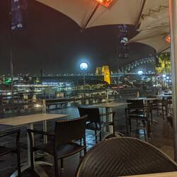 Right in Circular Quay. Had a nice heating lamp and sat outside watching the boats go by. Too bad Annette got rained out. 😭😭 Just means we need a do-over. 😍😍😍
