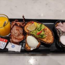 Waiting for my flight I even had time to grab some salmon and avo rolls. The soya sauce was in little fishies. So cute. Yummy too.