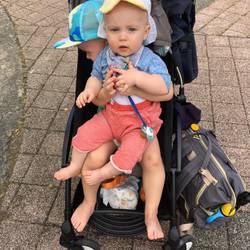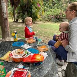 Der Flug war insgesamt wirklich recht entspannt. Nachdem wir in Frankfurt angekommen sind hat Thilo bis zum Abflug in der Trage geschlafen. Theo hat es sich mitLue lisää