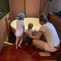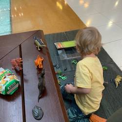 Um 6:30 Uhr hat uns der Hotelshuttle zum Flughafen gefahren. Das bedeutete die Kinder mussten zeitig geweckt werden, doch beide waren gut drauf. Nur Theo hat mehrfach betont, dass wir noch nichtLue lisää