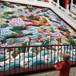 Heute haben wir nach dem Frühstück das Stadtviertel um unserem Hotel erkundet. Da heute Samstag ist, waren die Straßen sehr leer und viele Leute haben in den Parks Tai Chi und Sport gemacht. TheoLue lisää