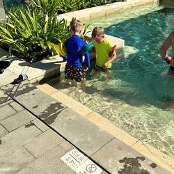 Heute haben wir den ganzen Tag am und im Pool verbracht. Thede interessiert sich so langsam auch für das Wasser und den Kinderpool. Thilo war nicht mehr aus dem Wasser rauszubekommen und schwimmtLes mer