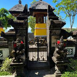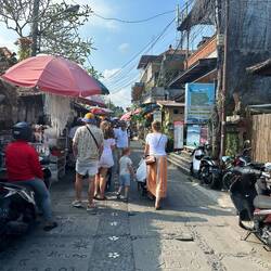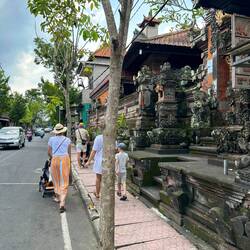Wir haben uns für heute den ganzen Tag einen Fahrer gemietet. Mit ihm wollen wir die Highlights von Ubud erkunden. Als erstes ging es zum Suwat-Wasserfall. Vom Parkplatz aus mussten wir durch einenLes mer