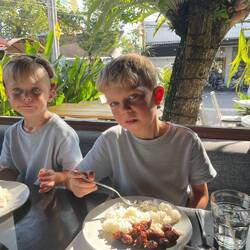 Heute startete der Tag für Tim und Steven um 7 Uhr mit einem Morgenlauf. Danach haben wir unser letztes sehr leckeres Frühstück hier im Westin Ubud genossen. Anschließend ist Tim mit den Jungs anLes mer