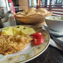 Frühstück gab's hier. Kaffee und Blätterteig mit Käse (warm). Sehr lecker 😋