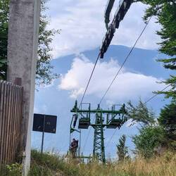 Gut gelaunt erreichen wir die Leiteralm, gönnen uns ein kühles Bierchen und fahren mit dem Korblift zurück nach Vellau.
