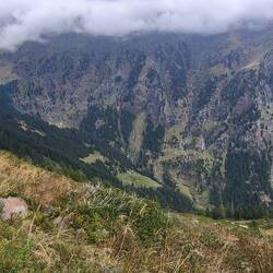 Erste Einkehr auf der Leiteralm, frühstücken und die etwas wolkenverhangene Aussicht geniessen.