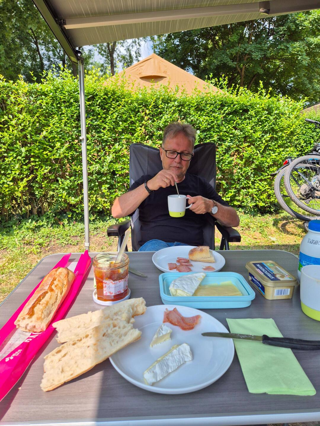 Heute ist Abreise Stimmung. In der Nacht hat es wieder geregnet 🫤 aber.....am Morgen können wir bei angenehmer Temperatur draußen das Frühstück genießen. Der Campingplatz ( fast!! ) mitten inもっと詳しく