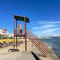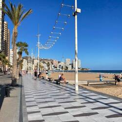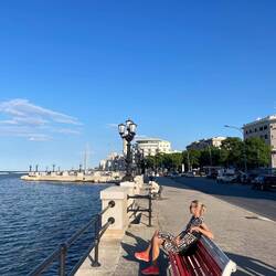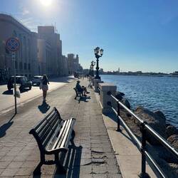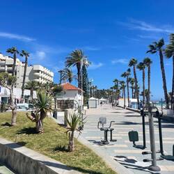 Aamulla heti kaupungille aamupalan jälkeen.Nopea kävely rantaviiva pitkin päästä päähän 11 km🥲 Aurinko lämmittää sen verran että varmaan +26 oli. Uudella puolella rantabulevardiLæs mere