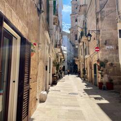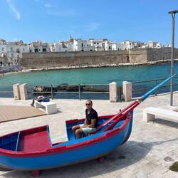 Aamulla yhdeksän aikaan lentokentälle ja Wizzairin lento Bariin. Lentoparkista oma auto ja suuntana Lecce. Ensimmäinen pysähdys Polignano a Mare; puhdas sininen merivesi, tutunnäköinen jyrkkäLæs mere