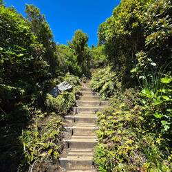 Also weiter über die letzten Stufen, bis wir endlich am Ende des Wegs angekommen sind und sich der Maunga Taranaki in seiner vollen Pracht präsentiert.