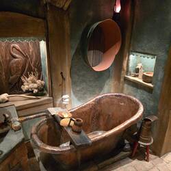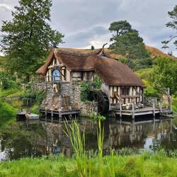 Das heutige Gebäude ist übrigens das dritte seiner Art. Das erste wurde für die schlechte Vision, die Galadriel Frodo zeigt, um zu verdeutlichen, wie wichtig es ist, dass der Ring zerstört wird, abgebrannt. Die 3 Orks, die in dieser Szene vor dem brennenden Green Dragon stehen, sind eigentlich Feuerwehrleute aus Matamata, der nächsten größeren Stadt, die aufpassen, dass das Feuer nicht außer Kontrolle gerät... So kann man auch zu Filmrollen kommen 😂