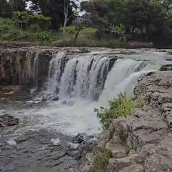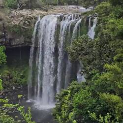 Da wir nun viel Zeit haben, fahren wir vorher noch zu den Rainbow Falls (Auf Maori: Waianiwaniwa) in Kerikeri und wandern eine Zeit lang am Waipekakoura River entlang. Da es regnet, besichtigen wir noch die Fairy Pools und kehren dann nach einer Dreiviertelstunde um und machen gemütlich Mittagspause, bis wir wieder nach Paihia zurückfahren.