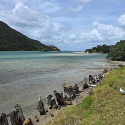 Auf dem Weg zum Trailhead fällt uns auf einmal auf, dass wir uns in Waitangi befinden und prompt gehen wir an den Waitangi Treaty Grounds, dem Ort der Verfassungsunterzeichnung, vorbei.