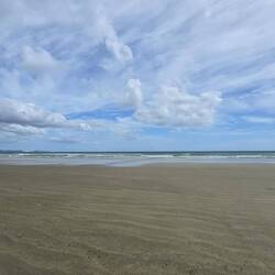Auf dem Rückweg fahren wir bei Waipapakauri mit dem Bus auf den Strand und fahren dort eine ganze Weile Richtung Norden, bis unser Fahrer anhält. Jetzt heißt es mit dem Bodyboard surfen. 😂