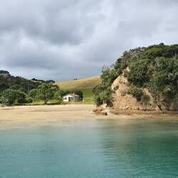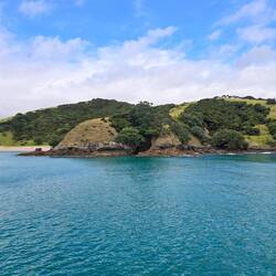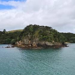Die Bay of Islands besteht insgesamt aus 144 kleinen und großen Inseln und liegt im Pazifischen Ozean an der Ostküste der wunderschönen Nordinsel. Auf unserer Fahrt stoppen wir zuerst in Russell, das auf einer Landzunge liegt, und nehmen noch weitere Passagiere auf. Russell ist mittlerweile ein zauberhaftes Städtchen. Früher trug es aufgrund seiner zwielichtigen Gäste (geflohene Sträflinge aus Australien, desertierte Seeleute, raue Gesellen der Walfangschiffe) den Spitznamen Hellhole of the Pacific. 😆