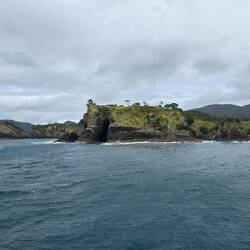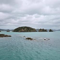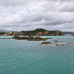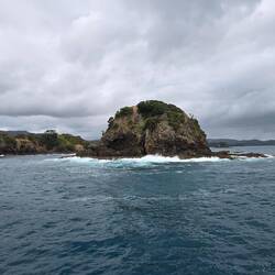 Leider klappt es aufgrund der rauen See nicht mit der Fahrt zum Hole in the Rock. Die Rückfahrt verläuft nahe an den vielen kleinen Inselchen entlang. So sind wir geschützter und Dad Auf und Ab ist nicht ganz so groß. Leider!