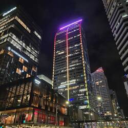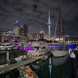 Nach einem Abendessen im Swashbucklers, bei dem wir direkt am Hafen hervorragenden Fisch und Meeresfrüchte essen, schlendern wir gemütlich zurück zum Hotel und freuen uns, den Hafen ⚓, die Skyline 🏙️ und vieles mehr bei Nacht erleben zu können.