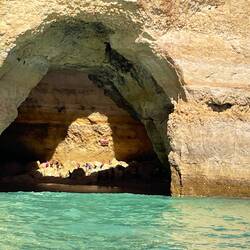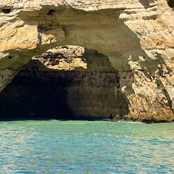 Es sah nicht ungefährlich aus, wie der Käpten das nicht kleine Schiff trotz der heftigen Strömung in die Höhle manövrierte. Was wir dann sahen war die 35 € gut wert. In die Höhle gelangt man nur mit Boot oder anderen Schwimmgeräten.
