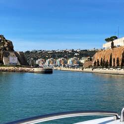 Die Tour führte uns zuerst ein Stück in den Atlantik, denn sie war mit Dolphinwatching angepriesen. Und nach ca. einer 3/4 Stunde haben wir dann auch wirklich eine Zeitlang eine Gruppe von mehr als 10 Tieren verfolgt, die um unser Schiff spielten.