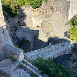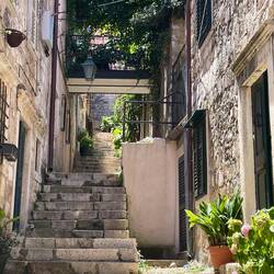 Mit dem Roller brauchen wir eine gute Stunde und finden einen Parkplatz direkt an der alten Festungsmauer. Erhaben umringt sie mit ihren 5 Festungen die Altstadt auf einer Länge von 2km und ist mittlerweile komplett begehbar. Die sinnlosen Zerstörungen des Jugoslawienkrieges aus den 90er Jahren sind alle beseitigt und täglich strömen tausende Besucher über die Festung oder durch die Altstadt, die vor allem von den riesigen Kreuzfahrtschiffen kommen, die Dubrovnik ansteuern. Wir entscheiden uns für eine Erkundung in den engen, steilen Gassen, wo ein zugiger Wind und Schatten die Stadterkundung bei 34Grad erträglich machen. Zudem verlangt man jetzt 35€ für ein Ticket zum Betreten der Stadtmauer.