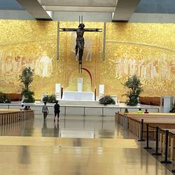 Rund um die Kapelle, die am Ort der Erscheinung errichtet wurde, entstand eine Basilika und eine hochmoderne Kirche im Brutalismus-Baustil, die über 9000 Sitzplätze verfügt und ein riesiger Besucherplatz, der angeblich doppelt so groß ist wie der Petersplatz in Rom. Am Jahrestag finden hier mehr als 1 Million Menschen Platz, insgesamt kommen über 6 Millionen Pilger im Jahr um das Heiligtum zu besuchen.