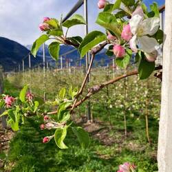 Der Weg führt uns weiter nach Süden, durch Landschaften in denen sich der Wein und Obstanbau abwechseln. Die ersten Apfelbäume stehen in voller Blütenpracht.