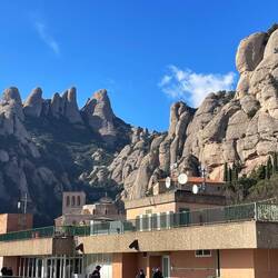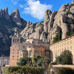 Das weltberühmte Kloster Montserrat liegt imposant an die Berggipfel geklebt. Zu erreichen ist es, zumindest mit kleineren Fahrzeugen über die Straße,