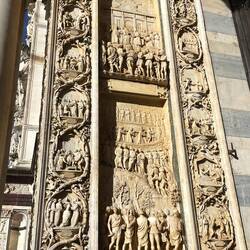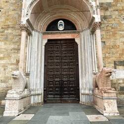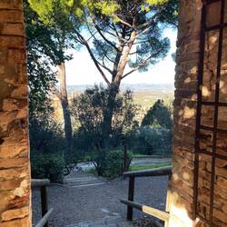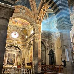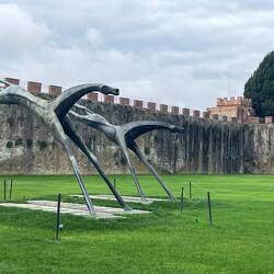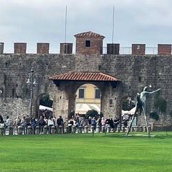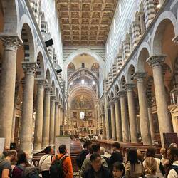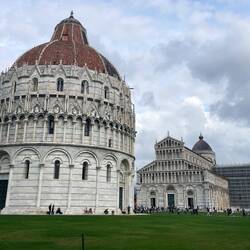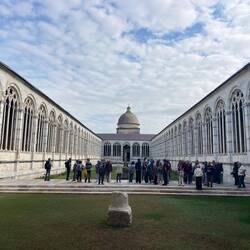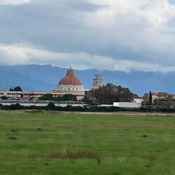 Der Radweg, eine ehemalige Bahnstrecke, führt über 10 km direkt in die Stadt. Nachdem die Stadttore passiert sind nähert man dem Unesco Kulturerbe Kathedrale Pisa mit den dazugehörigen Gebäuden.Les mer