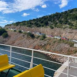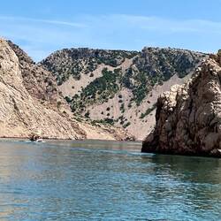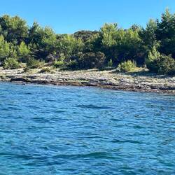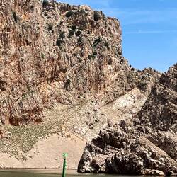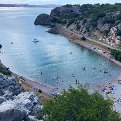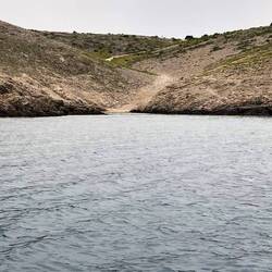 Heute entscheiden wir uns mal für die andere Fahrtrichtung, dorthin wo die Vegetation und Felsformation durch die brutale Kraft der Bora bestimmt ist. Grüne Buchten finden wir hier nur in besondersLeer más