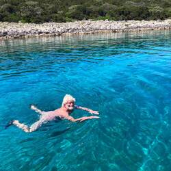Wir haben heute in einer kleinen feinen Bucht in glasklarem Wasser gebadet, die Bilder kann/darf ich euch leider nicht zeigen🫣