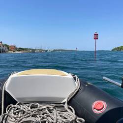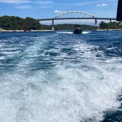 Endlich ist die Durchfahrt unter der Brücke nach Vir gefahrlos befahrbar, die Fahrrinne ist durchgehend mindestens 2 Meter tief.