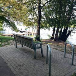 Für die erste Nacht in Schwerin haben wir einen kostenlosen Parkplatz an der alten Fähre, 30 Meter zum See und 1Leer más