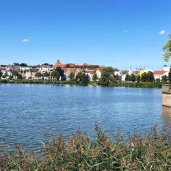 Schon die Fahrt mit dem Fahrrad nach Schwerin ist ein Vergnügen! Entlang des Sees und auf den schönen Alleen hat man immer wieder eindrucksvolle Aussichten auf die Seenlandschaft, die die StadtLeer más