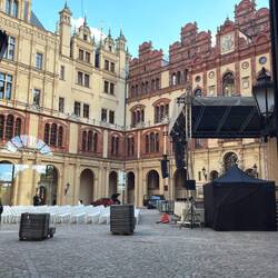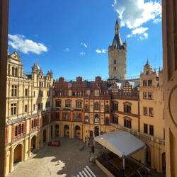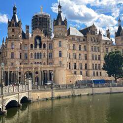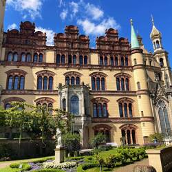 Malerisch gelegen präsentiert sich das monumentale Schloss Schwerin mit seiner goldglänzenden Kuppel und vielen goldenen Türmchen . Die ursprüngliche Orientierung an dem Loireschloss Chambord gibtLeer más