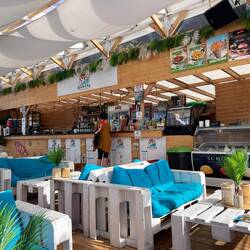 Hier wollen wir die Sonne genießen, am Strand faulenzen und die vielen Annehmlichkeiten des Campingplatzes genießen. Blitz und Donner mit dicken Hagelkörnern sind wir hoffentlich davongefahren, soLeer más