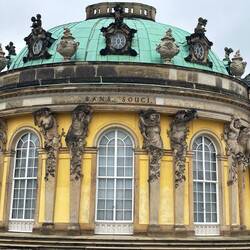 Pünktlich um 10:00 Uhr starten wir unsere Besichtigungstour im Schloss Sanssouci, dass sich Friedrich der Große als Lustschloss auf einem Weinberg, umgeben von Gartenanlagen, als Sommersitz in einerLeer más