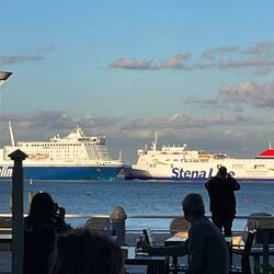 Bei Sonnenschein und stürmischen Wind auf der Platte angekommen, aber zum Schiffe gucken ist es ok.