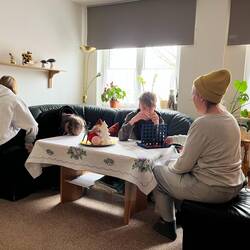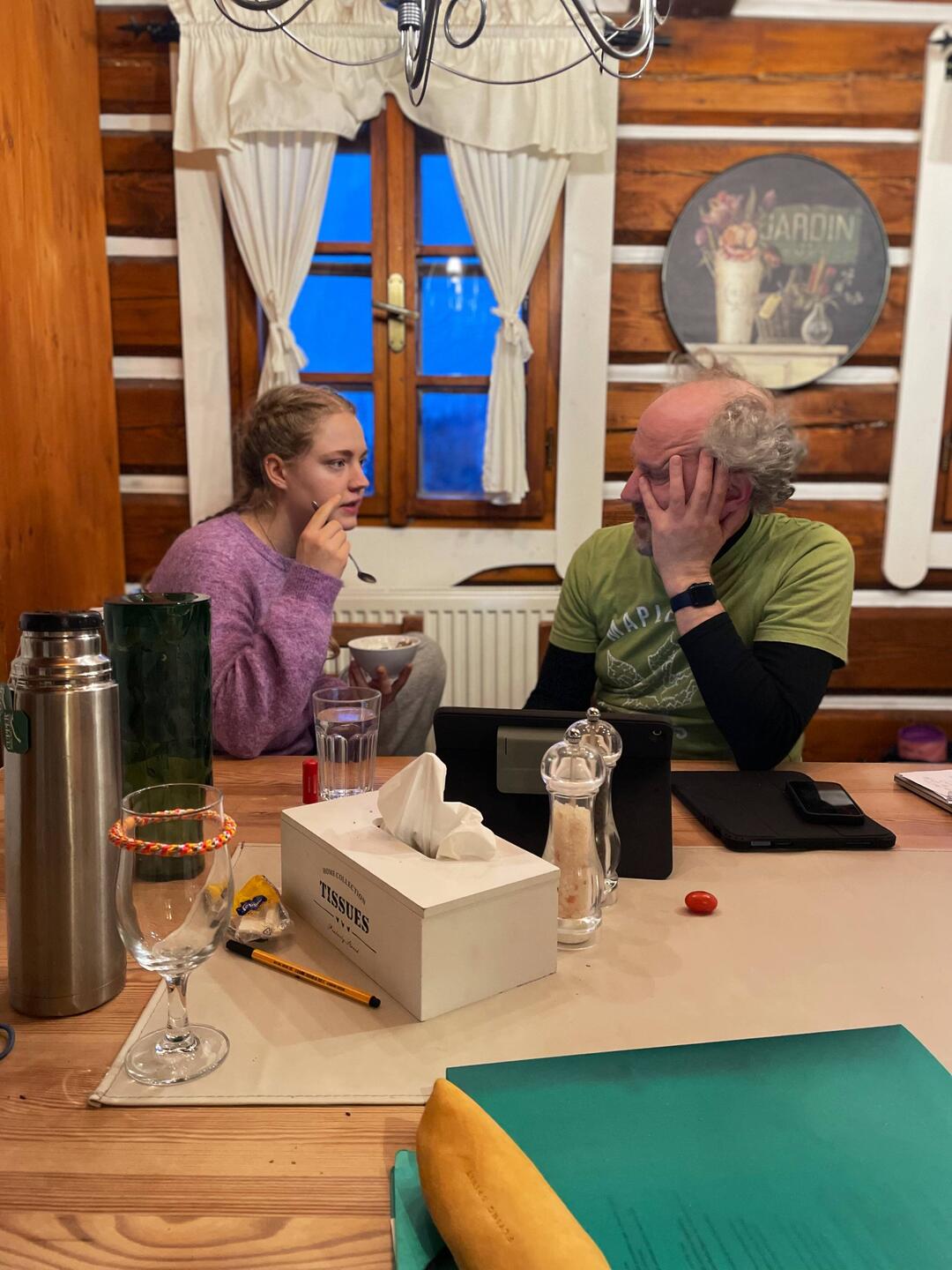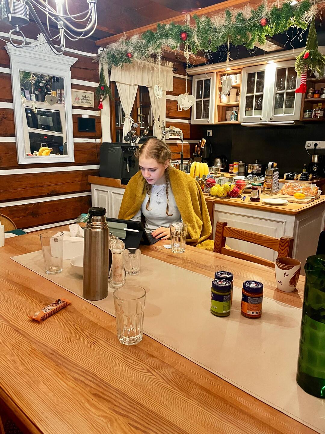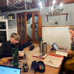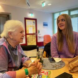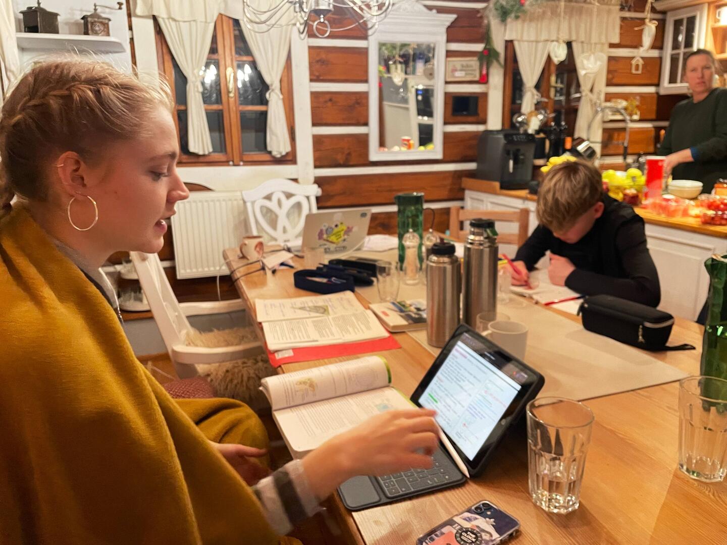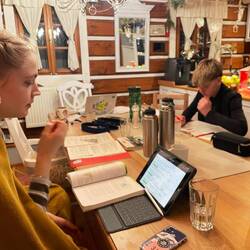 Hat eine ihrer Abiprüfungen mündlich und muss dazu ein Exposee abgeben. Sie hat ihre Prüfung in Geschichte und Politik über die RAF. Jens bespricht mit ihr das Expose.