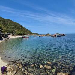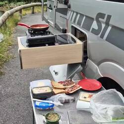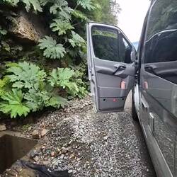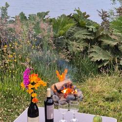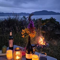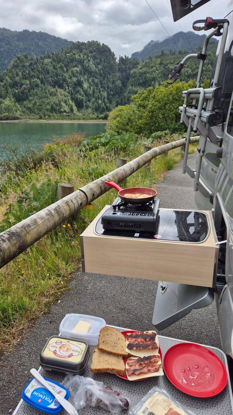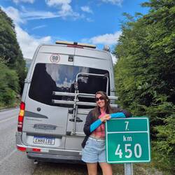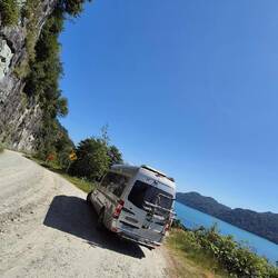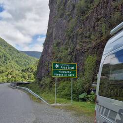 Camping selvagem na estrada/ acostamento de Puyuhuapi. Golfinhos.