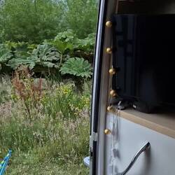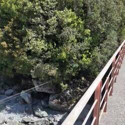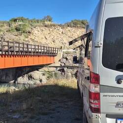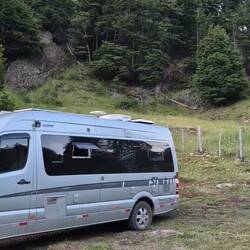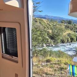 Acampamento selvagem do lado da ponte em Villa Cerro Castillo, onde tinha um motorhome europeu estacionado ao lado.