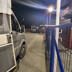 Pernoite: na rua ao lado da balsa em Hornopiren.