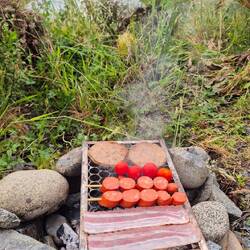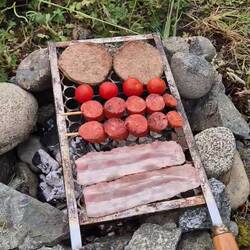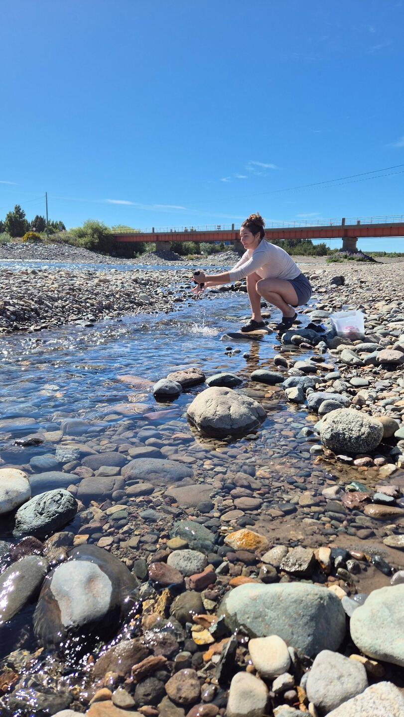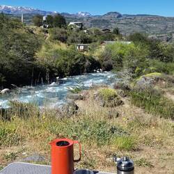 Acampamento selvagem em frente ao rio perto da ponte em El Blanco, Coyhaique.