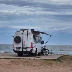 Chegada em Punta del Diablo e pernoite na rua em frente ao mar.