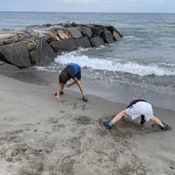 Kleine Auszeit am Meer. Die Jungs haben eine Ninja Burg gebaut und sind rumgerannt. Zum Essen gabs dann aufgewärmte Pizza vom Grill - spanische scharfe Würstle - Nürnberger und Baguette.