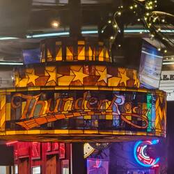 In diesem Pub dreht sich alles um die Easy rider und die grosse Freiheit in Amerika. Aufallend schöne Glaslampen aus Dublin hängen im ganzen Pub. Harley Davidson stehen auch noch einige rum.