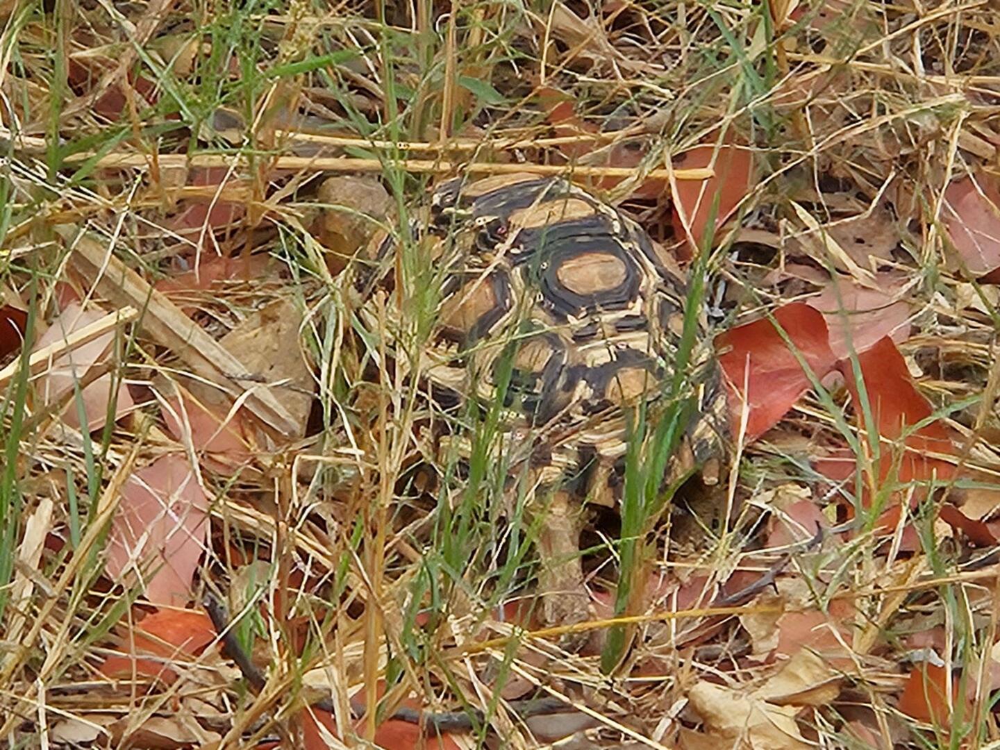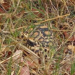 Eine kleine Schildkröte flitzt nach Fritz seinem Toyota Hilux über die Sandpiste . Ja voll krass ... sa haben wir und sie aber Glück gehabt.