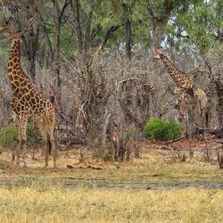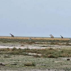 Am Horizont dünne Stangen, die sich bewegen. Fernglas raus und welch ein Freudenschrei im Auto ... Giraffen ... oh wow, so gigantisch